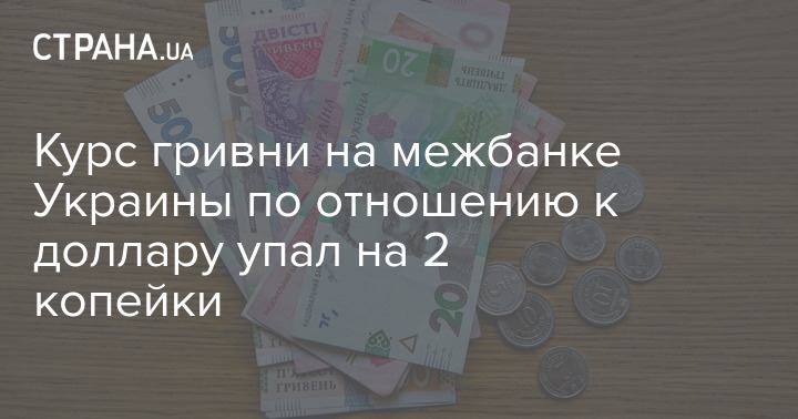 Курс гривни на межбанке Украины по отношению к доллару упал на 2 копейки