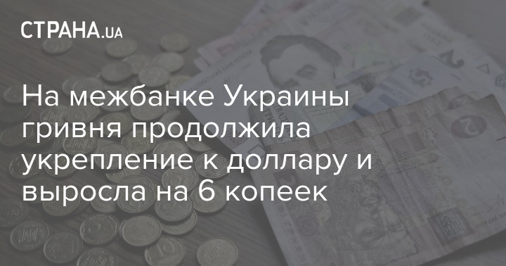 Курс гривни на межбанковском валютном рынке после укрепления в среду на 12 копеек в четверг укрепился на 6 копеек и составил 28,24 гривен за 1 доллар.