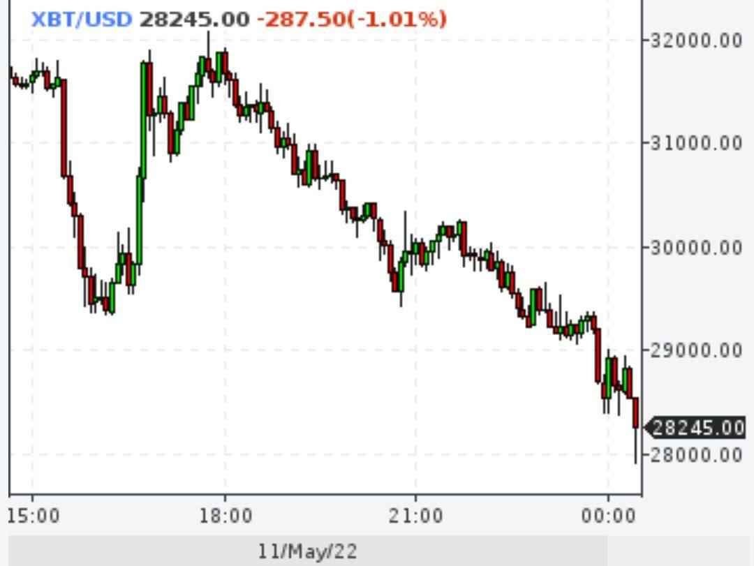 Биткоин сегодня продолжил падение и достиг уже отметки ниже 28 тысяч долларов, обновив свой минимальный показатель за год.