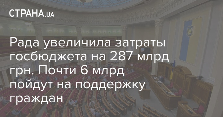Рада увеличила затраты госбюджета на 287 млрд грн. Почти 6 млрд пойдут на поддержку граждан