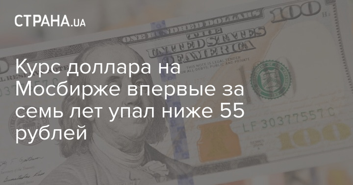 Курс доллара на Мосбирже впервые за семь лет упал ниже 55 рублей