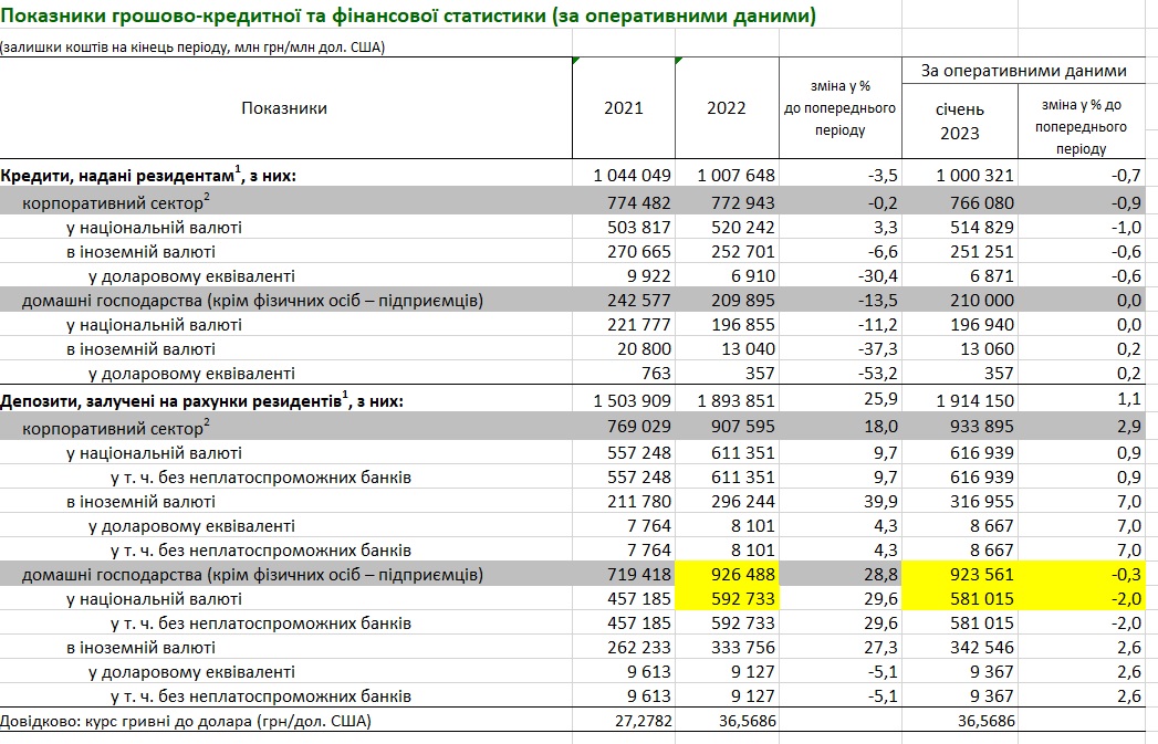Вкладчики оказались заложниками этой ситуации, может потому и стали активнее снимать гривневые вклады, которые являются для людей убыточными с учетом текущей инфляции и девальвации гривны. Согласно отчету Госстата, в годовом измерении уровень инфляции в январе 2023 года составил 26%. А девальвация наличного курса гривны с начала войны достигла 40%: в среднем с 29,2 грн/$ до 40,5 грн/$.