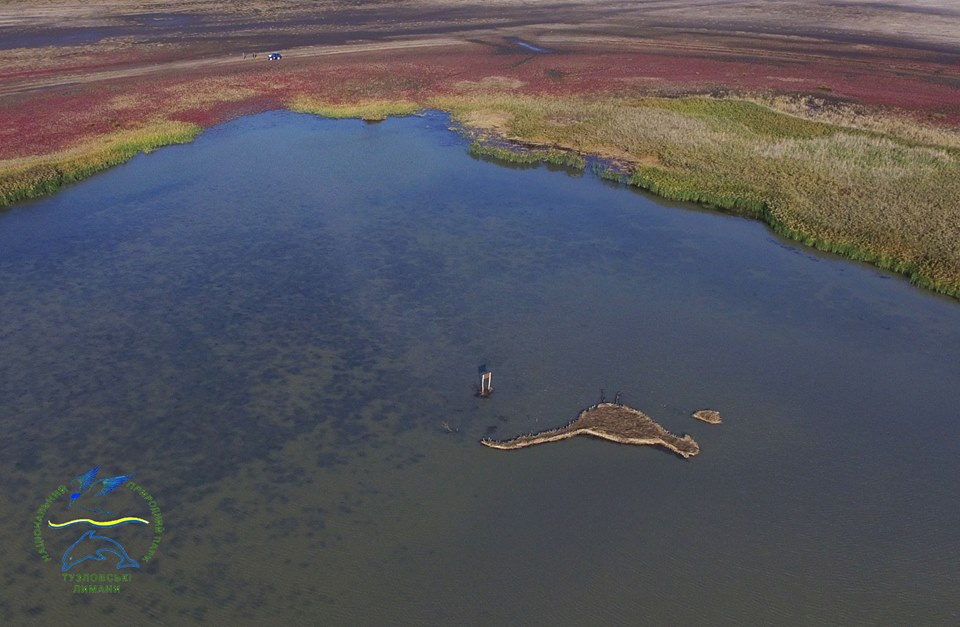 В лимане Бурнас Одесской области появился новый искусственный остров в виде птицы. Об этом сообщает пресс-служба национального природного парка "Тузловские лиманы".