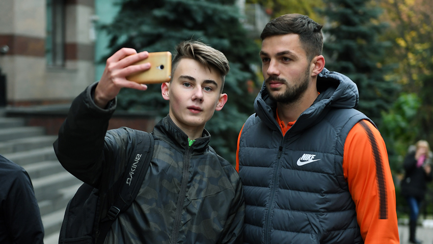 17:00 День матча игроки Шахтера традиционно начали с завтрака и прогулки. Футболисты и тренеры прошлись по центральным улицам Киева, где охотно общались и фотографировались с болельщиками и болельщицами самых разных возрастов - "от мала до велика".