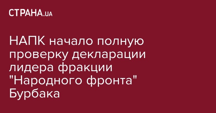 НАПК начало полную проверку декларации лидера фракции "Народного фронта" Бурбака