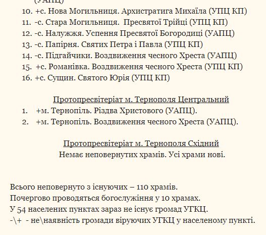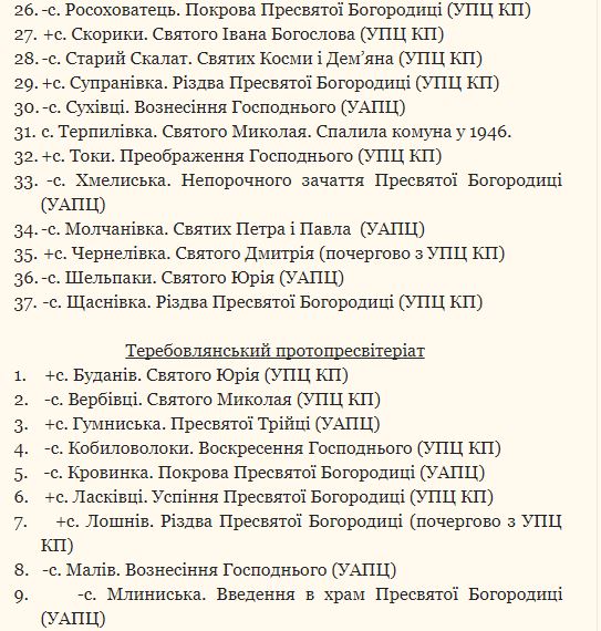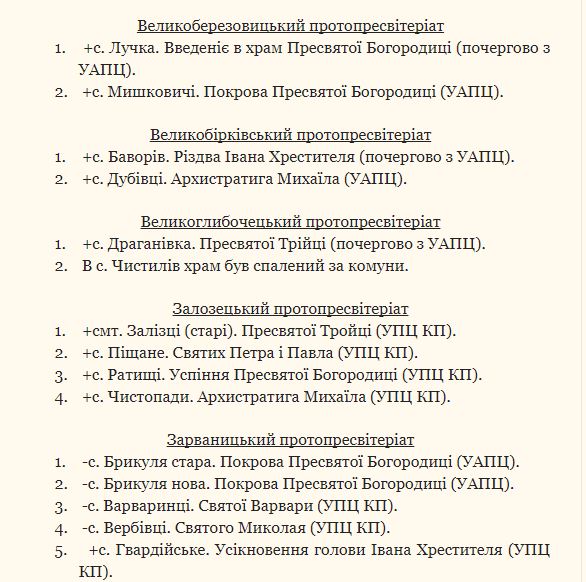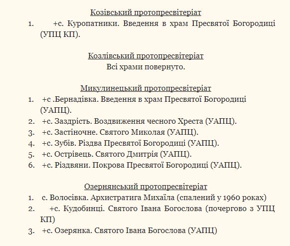 Всего в перечне 110 храмов, которые на данный момент принадлежат УПЦ Киевского патриархата и Украинской автокефальной православной церкви.