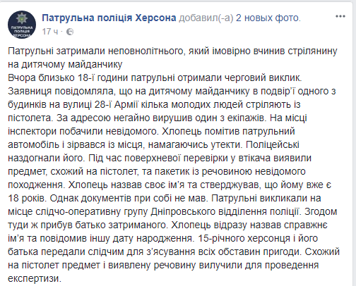 В Херсоне 15-летний парень открыл стрельбу на детской площадке