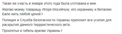 "Проклятья и гибель врагам Украины", - завершил нардеп свой пост.