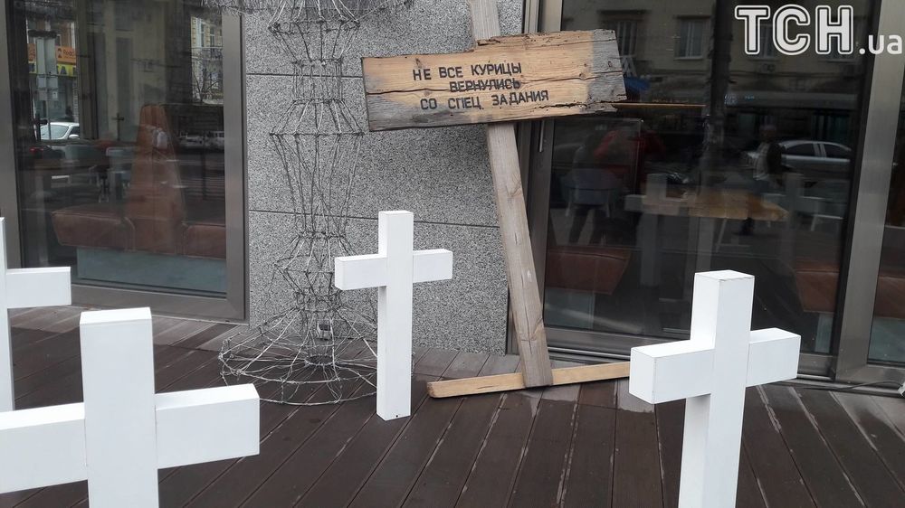 Киевляне отмечают, что натуралистичность крестов навевает не лучшие чувства. Кроме того, негодуют по поводу надписи на табличке. В соцсетях пишут, что в стране, где с реальных спецзаданий не возвращаются бойцы, такие шутки неуместны.