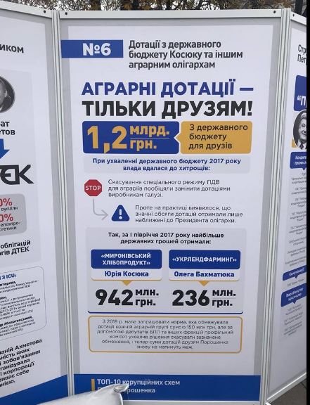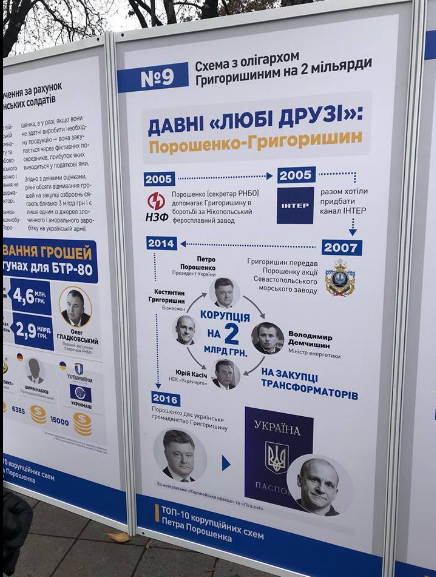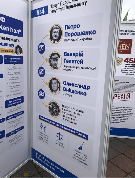 В воскресенье, 29 октября, на МихоМайдане под Верховной Радой активисты поставили стенды с информацией о коррупционных схемах и связях президента Петра Порошенко. Об этом с места событий сообщает корреспондент "Страны".