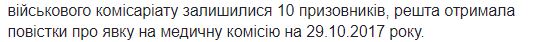 В комиссариате добавили, что призывникам "было предложено получить повестку о явке на 9:00 час 29.10.2017 года для прохождения медицинской комиссии с целью определения степени годности к военной службы".