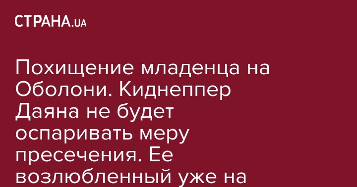 Похищение младенца на Оболони. Киднеппер Даяна не будет оспаривать меру пресечения. Ее возлюбленный уже на свободе