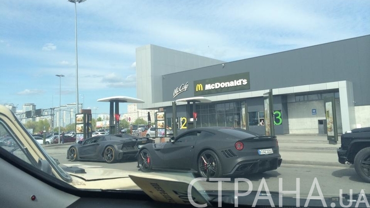 На прошедших выходных по Киеву разъезжали редкие и дорогостоящие автомобили. На проспекте Бажана, недалеко от М. "Осокорки", корреспондент "Страны" заметил Lamborghini, Ferrari, Mercedes-Benz и Range Rover общей стоимость 2,7 млн долларов. Все четыре машины приехали в спальный район, чтобы подкрепиться на McDrive.