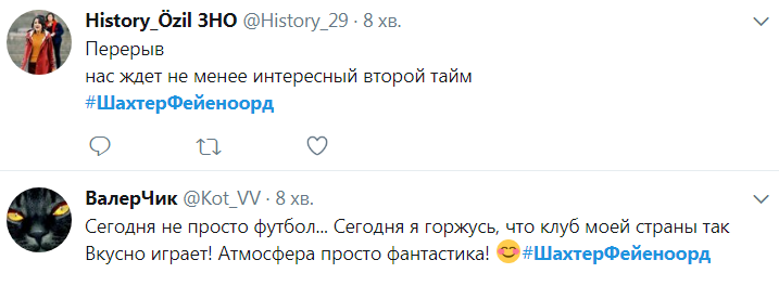 21:49 Ответ Фейеноорда. В течение одной минуты Боэтиус, слева, дважды подавал круглого в штрафную Шахтера, но наша защита справилась с голландской угрозой.