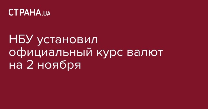 В четверг, 2 ноября, Нацбанк установил курс гривны относительно иностранных валют. Он обнародован на сайте НБУ.