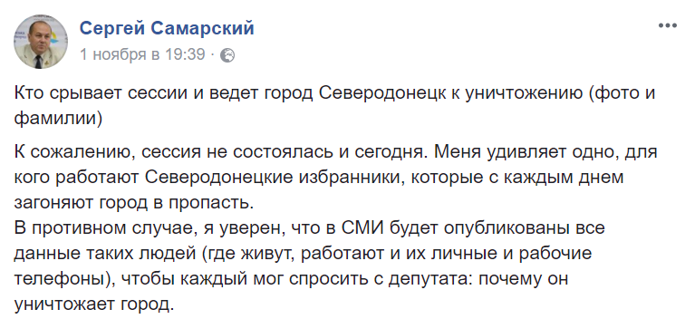 Одним грозил "мусоркой", другим - публикацией личных данных тех депутатов и чиновников, которые, по мнению Самарского, "загоняют город в пропасть".