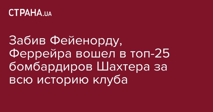 Забив Фейенорду, Феррейра вошел в топ-25 бомбардиров Шахтера за всю историю клуба