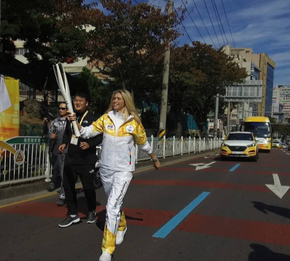 Знаменитая украинская поп-дива Вера Брежнева стала Олимпийским факелоносцем. Она пробежала дистанцию с факелом в руках на южнокорейском острове Чэджу.