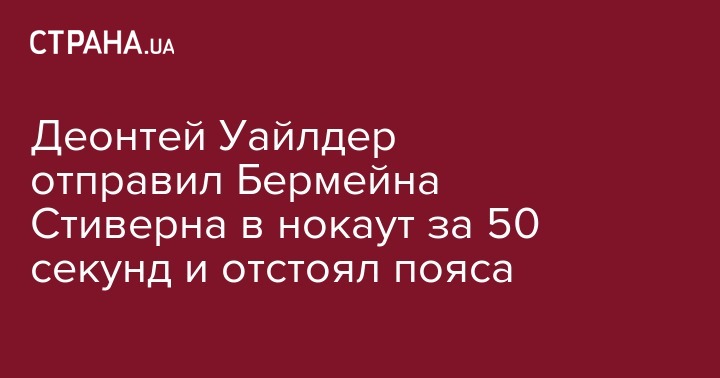 Бой за титулы чемпиона мира по версиям WBA, WBO и IBF в супертяжелом весе (свыше 90,7 кг), который прошел в Бруклине завершился триумфом Деонтея Уайлдера (39-0, 38 КО) который добыл фантастическую победу над Бермейном Стиверном (25-3-1, 21 КО).