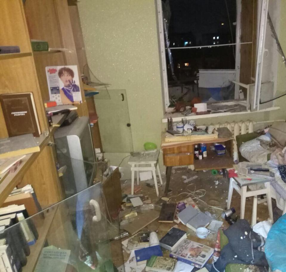 Вызов на улицу Донецкую в Соломенском районе правоохранители получили в 21.10 ч. Взрыв прогремел на 9-м этаже жилого дома.