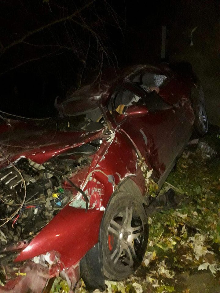 Известно, что водитель автомобиля Mazda 626, двигаясь по улице Старовильской, не справился с управлением и столкнулся с деревом и домом.