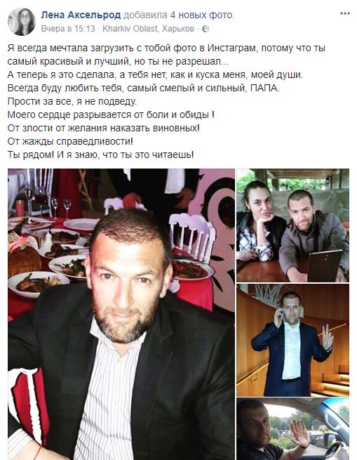 Дочь Елена после убийства отца написала о нем пост в Facebook: "Я всегда мечтала загрузить с тобой фото в Инстаграм, потому что ты самый красивый и лучший, но ты не разрешал... А теперь я это сделала, а тебя нет, как и куска меня, моей души.