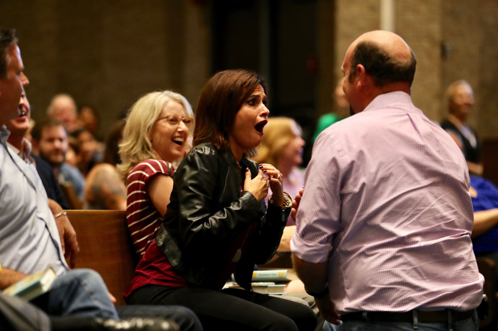 Американский актер Том Хэнкс на презентации сборника рассказов о пишущих машинках на Техасском книжном фестивале, помог сделать предложение мужчине из числа приглашенных в зале. Об этом сообщает People.