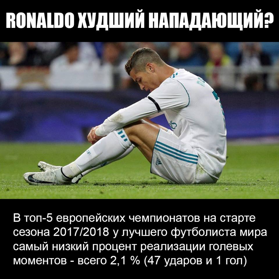 У форварда Реала и сборной Португалии Криштиану Роналду этот сезон как-то не задался. Лучший футболист мира-2017 в семи матчах Ла Лиги забил всего один гол. И это в то время, как его главный конкурент из Барселоны Лео Месси наколотил уже дюжину мячей в одиннадцати играх за Барселону в чемпионате и Лиге чемпионов.