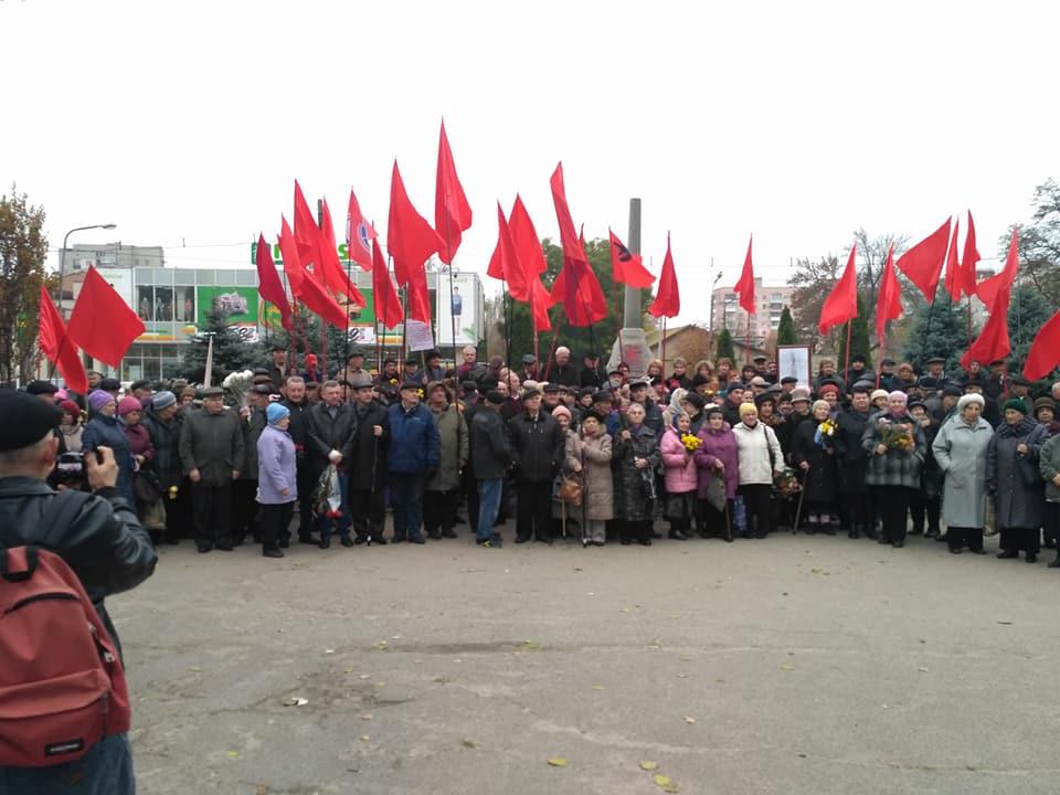 В Запорожье несколько сотен пенсионеров с красными флагами устроили митинг возле памятника Октябрьской революции. Ранее этот памятник неизвестные облили красной краской. Во время декоммунизации памятник так и не демонтировали, поскольку здесь находится место захоронения людей.