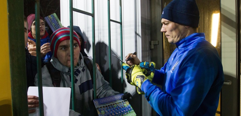 Невзирая на довольной прохладный вечер, посмотреть на подготовку нашей сборной, а заодно – и сфотографироваться с игроками и получить их автографы, пришло немало болельщиков.
