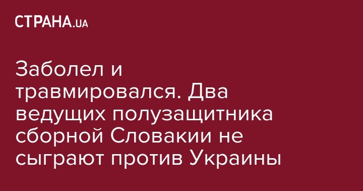 Заболел и травмировался. Два ведущих полузащитника сборной Словакии не сыграют против Украины