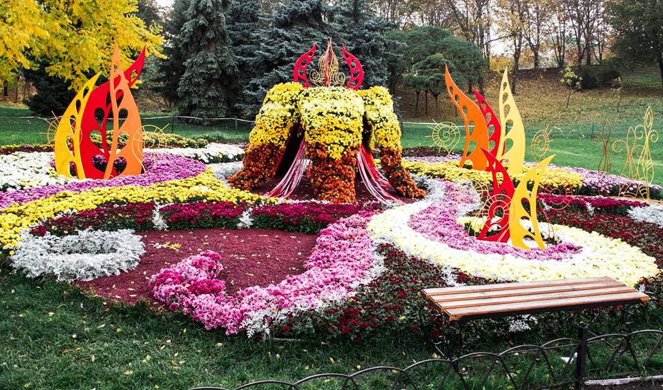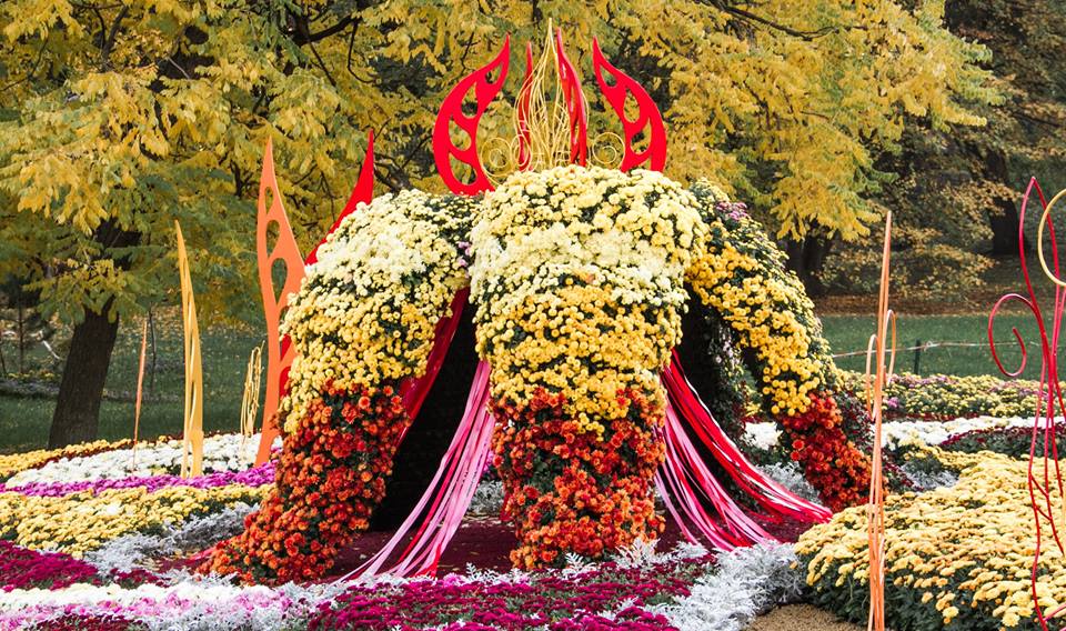 4 октября в столице открылась осенняя выставка хризантем. На выставке под названием "Фантастические истории" на площади 3 700 кв. м сотрудники "Киевзеленстроя" из 25 тыс. цветов создали десять необычных цветочных композиций.