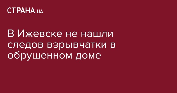 Следы взрывчатых веществ на месте обрушения дома в Ижевске не обнаружены. Об этом сообщила официальный представитель Следственного комитета России Светлана Петренко, передает РИА "Новости".