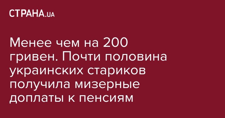 Менее чем на 200 гривен. Почти половина украинских стариков получила мизерные доплаты к пенсиям