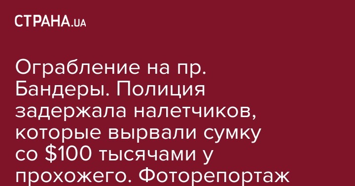 Глава Нацполиции Киева Андрей Крищенко сообщил в Facebook, что задержаны дерзкие грабители, которые вчера вырвали сумку со $100 тысячами у прохожего на проспекте Степана Бандеры.