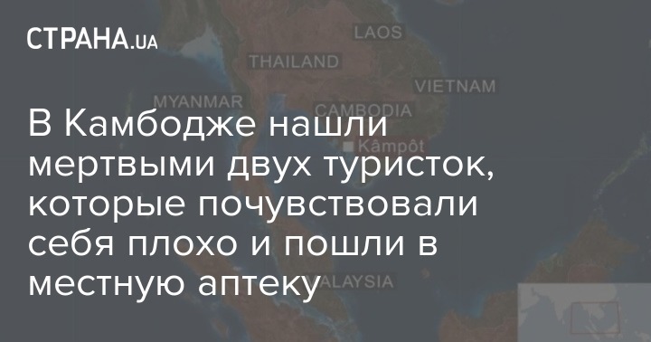 Британская туристка 22 лет Натали Сеймур и ее 27-летняя канадская подруга Эбби Гейл Амисола были найдены мертвыми в туристическом хостеле Monkey Republic камбоджийского города Кампот. Накануне они плохо себя чувствовали и ходили в аптеку за лекарствами, передает ВВС.