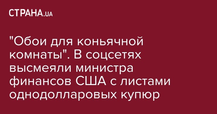 "Обои для коньячной комнаты". В соцсетях высмеяли министра финансов США с листами однодолларовых купюр