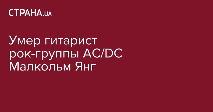 В семье братьев Янг, создателей знаменитой рок-группы АС/DC очередная утрата. После смерти в октябре старшего брата Малкольма и Ангуса Янгов - Джорджа, бывшего продюсером группы, в мир иной отошел и гитарист группы Малкольм Янг.