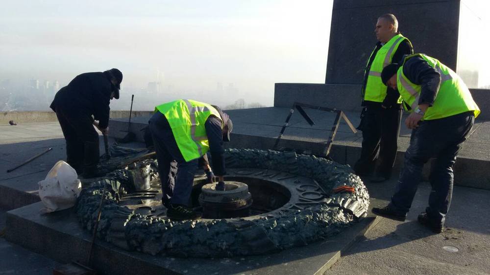 Как сообщала "Страна", чтобы очистить Вечный огонь от цемента в Киеве ждали приезда газовщиков. Территорию после акта вандализма убрали дворники.