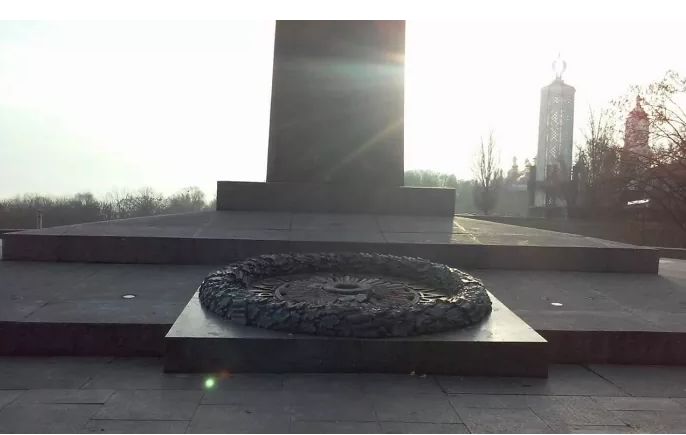 Появились фото Вечного огня в парке Славы в Киеве, который сегодня неизвестные залили цементом.