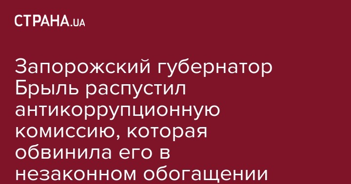 Запорожский губернатор Брыль распустил антикоррупционную комиссию, которая обвинила его в незаконном обогащении