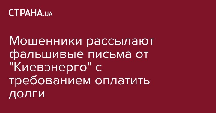 Мошенники рассылают фальшивые письма от "Киевэнерго" с требованием оплатить долги