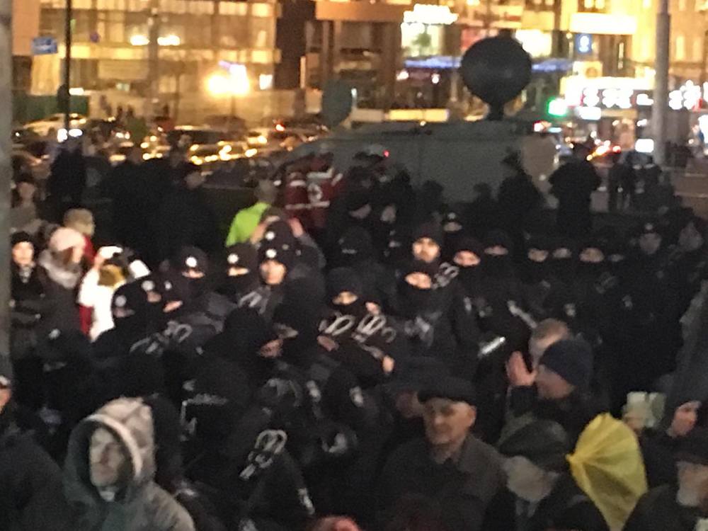 18:19 Странные маневры от полиции. Сначала пытались отрезать людей от палаток - потом ушли за стелу.
