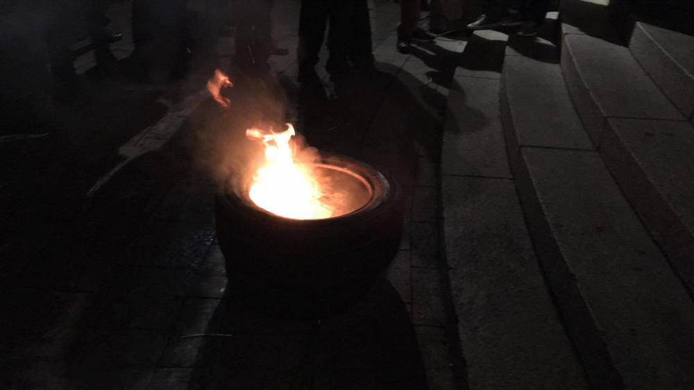 20:25 Полиция и пожарные зашли в толпу, потушили шины и ушли.