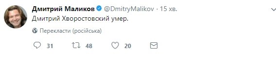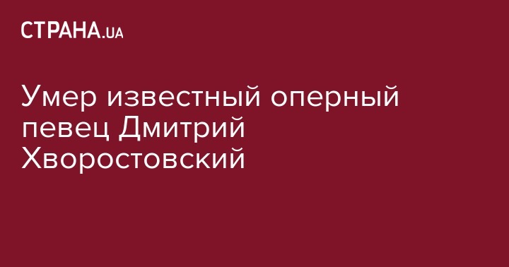 "РИА Новости" узнали у Маликова подробности. Хворостовский скончался в Лондоне сегодня поздно ночью на 56-ом году жизни. Он длительное время страдал от тяжелого хронического заболевания.