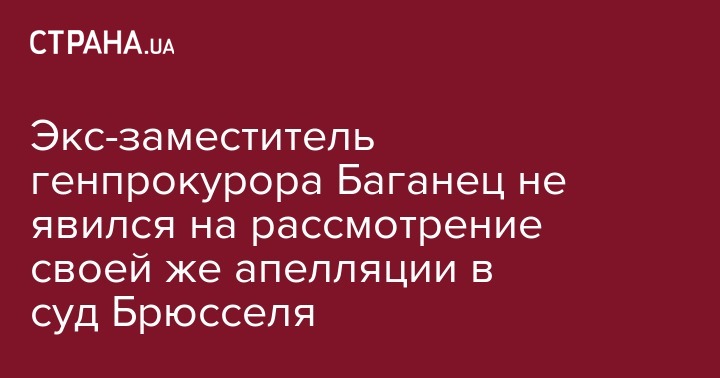 Бывший заместитель генерального прокурора Украины Алексей Баганец не явился на рассмотрение своей же апелляции в суд Брюсселя.