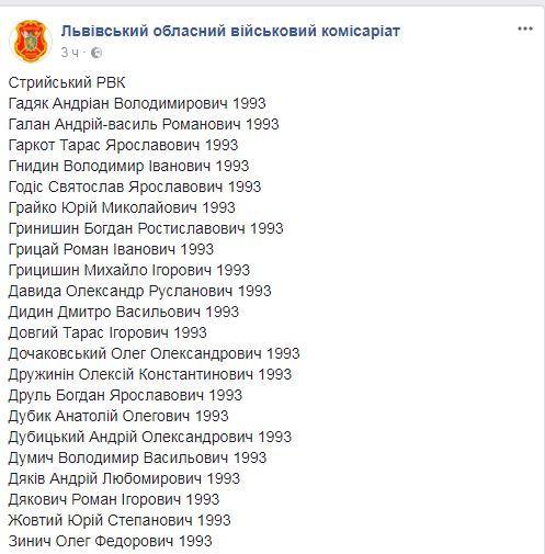 Списки выложены на странице военкомата в соцсети Facebook.