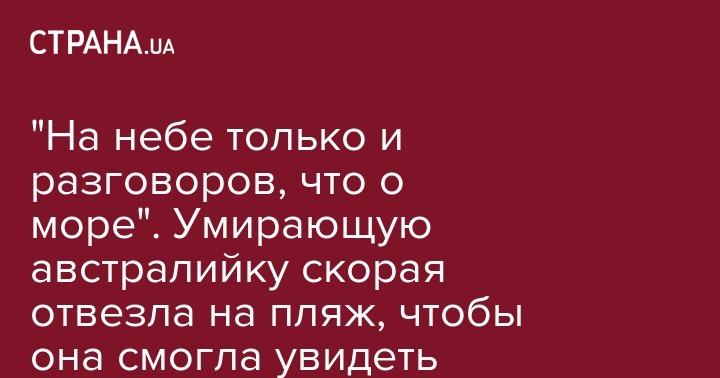"На небе только и разговоров, что о море". Умирающую австралийку скорая отвезла на пляж, чтобы она смогла увидеть океан