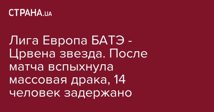 Самый горячий матч Лиги Европы прошел в Беларуси, где борисовский БАТЭ принимал белградскую "Црвену звезду" (0 - 0). После поединка здесь вспыхнули массовые беспорядки, и милиции пришлось применить спецсредства, чтобы разогнать агрессивную толпу. 14 иностранных болельщиков были задержаны, передает "Интерфакс-Запад".