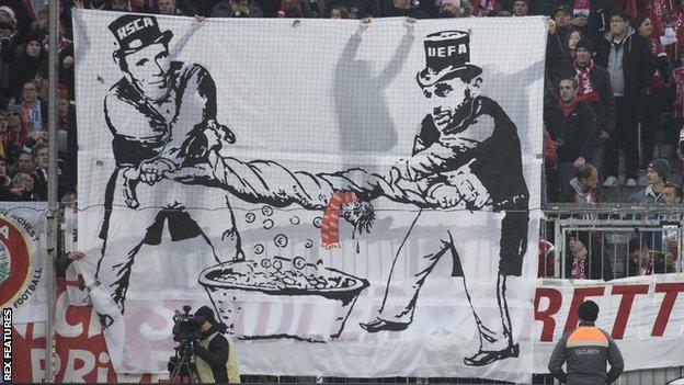 Такое поведение немецких фанатов, приехавших в Бельгию поддержать свою команду, было вызвано высокими ценами на билеты - от 70 до 100 евро. Кроме этого фаны "Баварии" вывесили банеры с резкой критикой УЕФА.